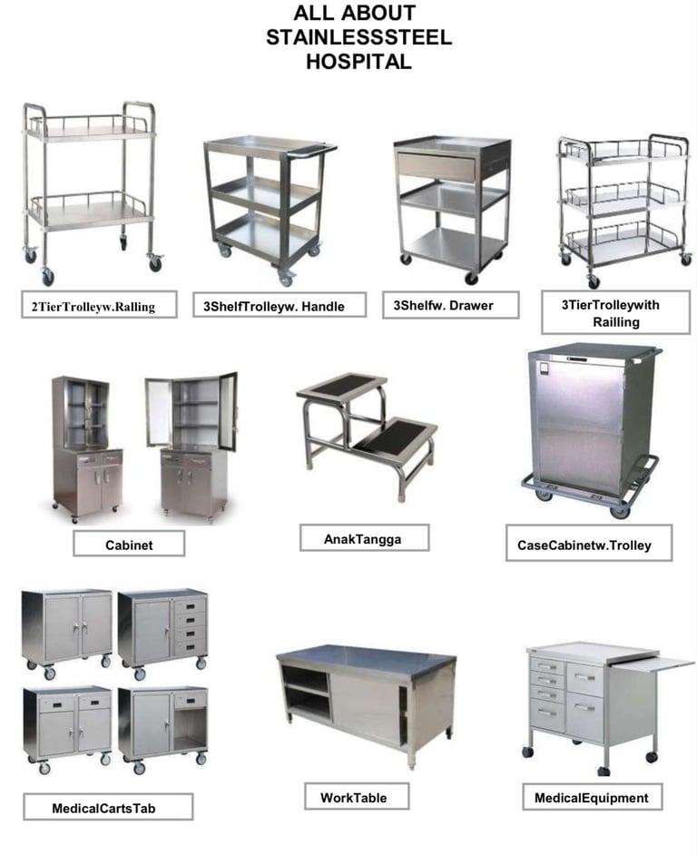 Hospital Stainless steel an ideal material choice for hospital equipment. Corrosion-resistant, easy to clean, and hygienic, making stainless steel especially suitable for sterile medical environments.